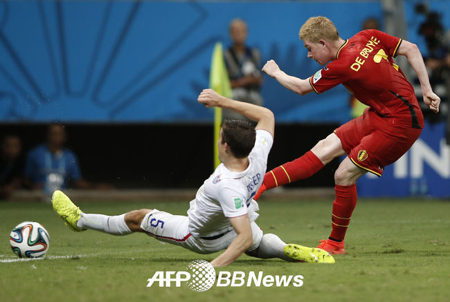 [OSEN=사진팀] 2일 오전(한국시간) 브라질 사우바도르 아레나 폰테 노바에서 열린 2014 브라질 월드컵 16강전 벨기에-미국 경기, 연장 전반 벨기에의 케빈 데 브라이너가 선제골을 성공시키고 있다.