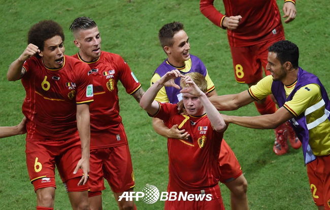 [OSEN=사진팀] 2일 오전(한국시간) 브라질 사우바도르 아레나 폰테 노바에서 열린 2014 브라질 월드컵 16강전 벨기에-미국 경기, 연장 전반 벨기에의 케빈 데 브라이너가 선제골을 성공시킨 후 기뻐하고 있다.
