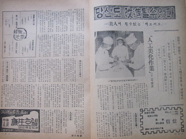 이런 기사가 실린 것은 1950년대 본격 시사, 오락 주간지인 이다. 은 1958년 5월23일치(통권 제 126호)에 특집 기획기사 ‘금주의 토픽’으로 ‘당신도 미인이 될 수 있다’고 주장하며 ‘성형 미인’의 실태를 당시 유명 연예인들의 사례를 들어 다루고 있다.