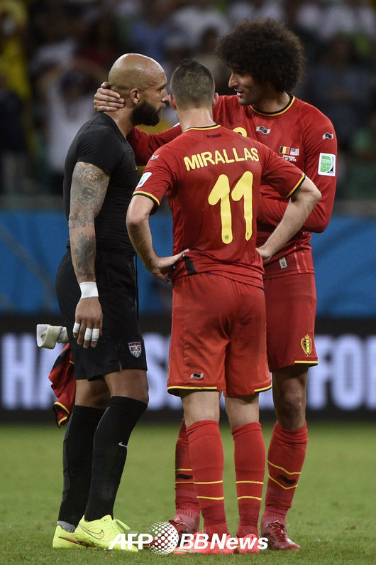경기를 마치고 벨기에의 마루앙 펠라이니가 미국 하워드와 얘기를 나누고 있다. /photo@osen.co.kr