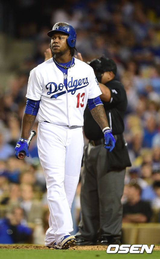 5회말 1사 만루 다저스 라미레즈가 삼진을 당한 뒤 더그아웃으로 들어가고 있다.