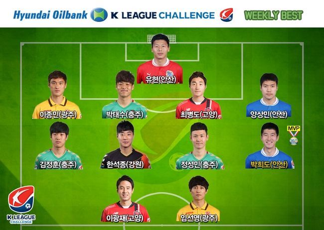 공격수 부문에는 임선영(광주, 7경기 만에 광주의 승리를 안김. 정확한 위치선정과 마무리로 1득점), 이광재(고양, 풀타임을 소화하며 공격에 무게감을 더함. 결승골을 도우며 승리까지 이끎. 1도움)이 선정됐다.