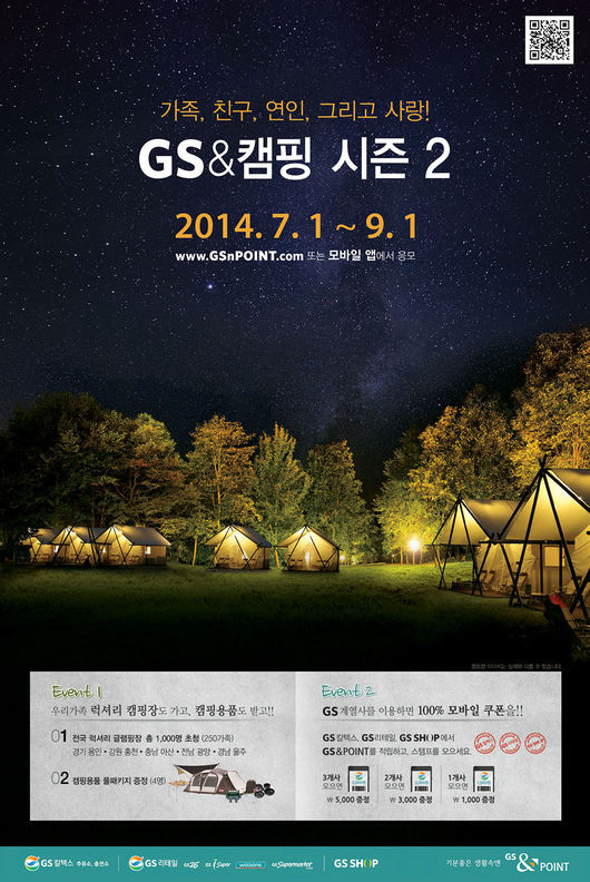 이강영 GS&POINT 마케팅 총괄 상무는 “캠핑에 대한 고객들의 뜨거운 관심으로 작년에 이어 두 번째 캠핑 이벤트를 마련하게 됐다”며, “가족 구성원간의 소통과 힐링이 필요한 요즘, GS&캠핑을 통해 서로 이해하며 사랑할 수 있는 좋은 기회가 되길 바란다”고 전했다.