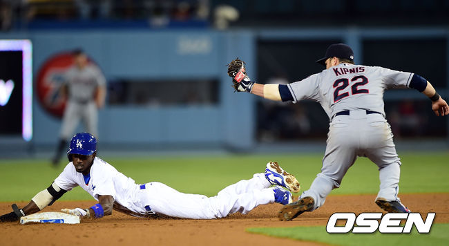 6회말 무사 1루 다저스 디 고든이 2루 도루를 시도하다 아웃당하고 있다./youngrae@osen.co.kr