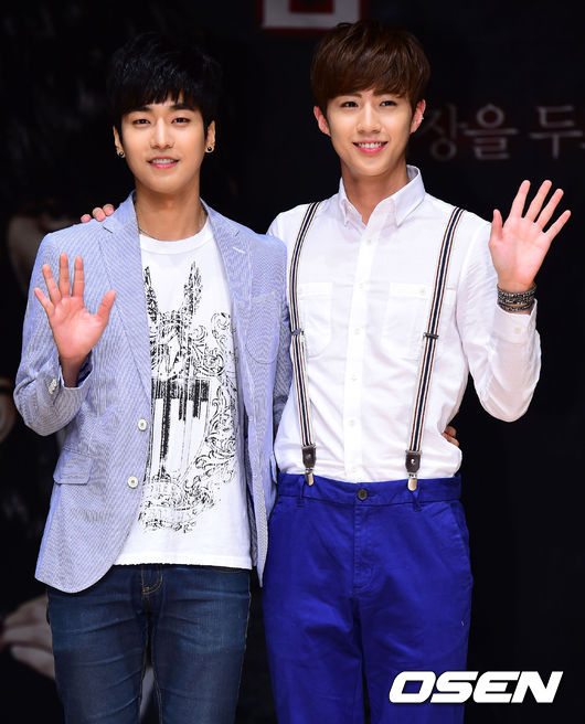 2일 오후 서울 청담동 일지아트홀에서 진행된 웹드라마 '뱀파이어의 꽃' 기자간담회에서 효준 승엽이 포토타임을 갖고 있다.