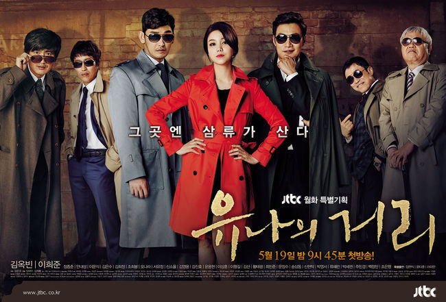 JTBC 월화드라마 ‘유나의 거리’(극본 김운경, 연출 임태우)는 직업, 성별, 나이, 성격까지 천차만별인 개성만점 사람들과 전직 소매치기범인 유나(김옥빈 분)가 사는 다세대주택에 세상 어디에도 없는 착한 사나이 창만(이희준 분)이 들어온 후, 상처와 아픔을 치유 받고 함께 부대끼며 살아가는 이야기를 그린 드라마.