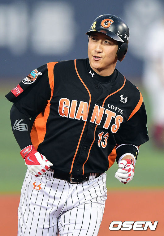 2일 오후 서울 목동구장에서 열린 '2014 한국야쿠르트 세븐 프로야구' 넥센 히어로즈와 롯데 자이언츠의 경기 2회초 1사 1루 황재균이 투런포를 치고 베이스를 돌면서 미소를 짓고 있다.