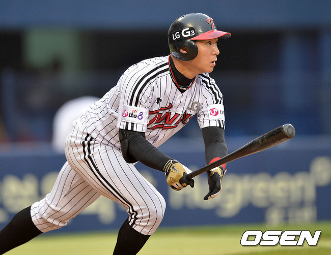 2회말 2사에서 LG 오지환이 우전안타를 치고 있다.