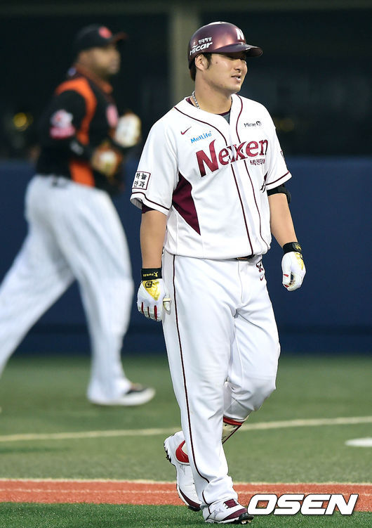 2일 오후 서울 목동구장에서 열린 '2014 한국야쿠르트 세븐 프로야구' 넥센 히어로즈와 롯데 자이언츠의 경기 2회말 2사 1,2루 박병호가 땅볼로 물러나자 아쉬운 표정을 짓고 있다.