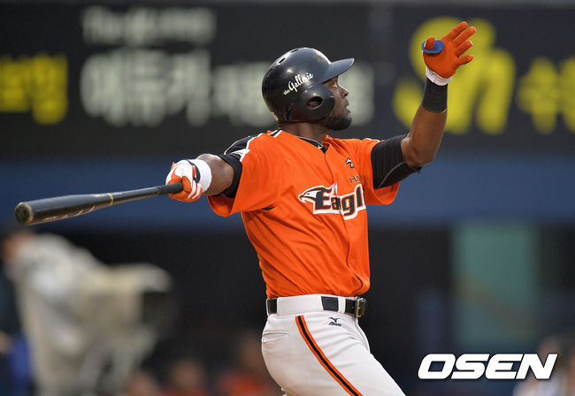 4회초 1사에서 한화 피에가 큼지막한 타구를 날리고 외야를 바라보고 있다. 이 타구는 LG 이병규에 의해 외야플라이로 처리됐다.