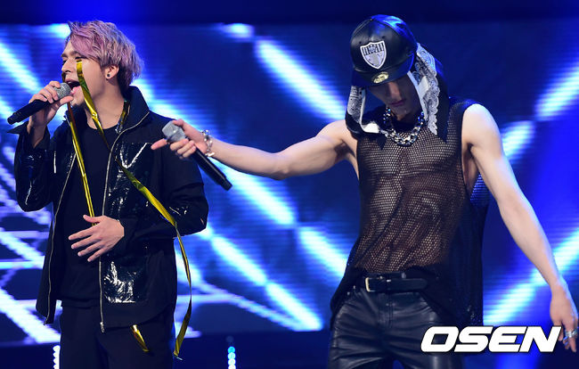 그룹 비스트가 신곡 '굿럭(Good luck)' 으로 '쇼 챔피언' 1위를 차지한 뒤 앙코르 무대를 펼치고 있다.