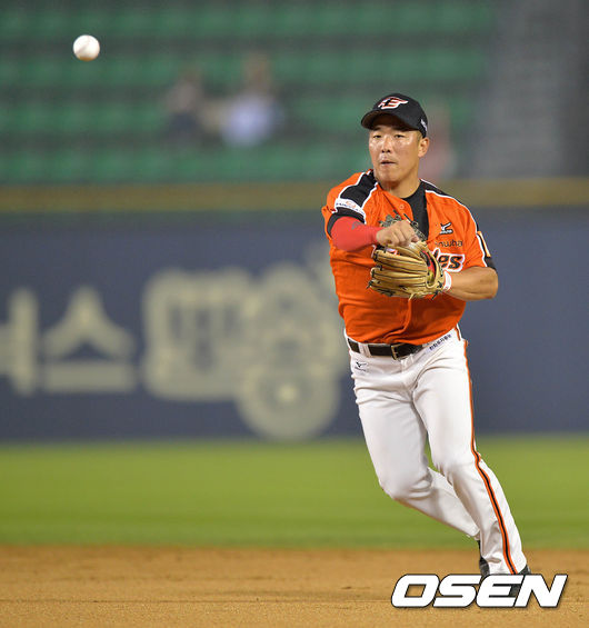 7회말 2사 1루에서 LG 김용의의 내야땅볼때 한화 정근우가 송구 실책을 범하고 있다.