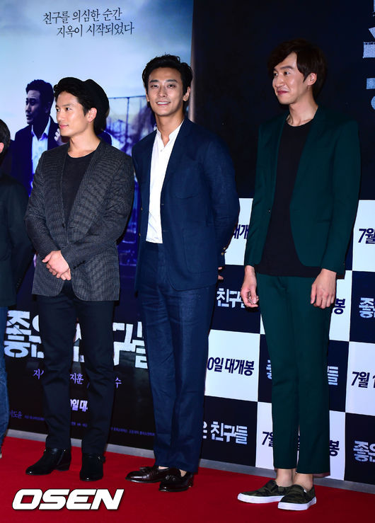 2일 오후 서울 왕십리 CGV에서 진행된 영화 '좋은 친구들' VIP시사회에서 지성 주지훈 이광수가 포토타임을 갖고 있다.