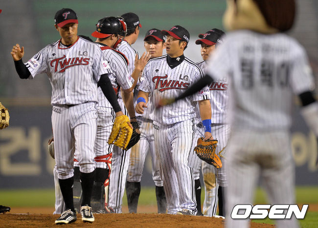 경기 종료 후 LG 선수들이 승리의 기쁨을 나누고 있다./sunday@osen.co.kr
