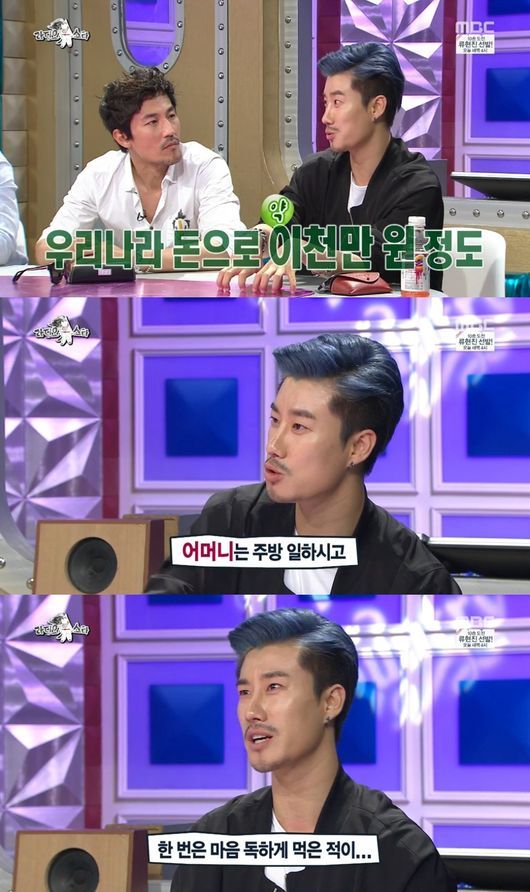 산이는 “올해 1월 처음 미국에 갔다. 사실 그 동안은 비행기 티켓 값도 없었다”고 말해 분위기를 짠하게 했다. 이어, “부모님을 뵈러 가면서 동생이랑 가져갈 수 있는 최대한 현금을 들고 갔다. 미국에서 아버지는 학교 청소를, 어머니는 주방 일을 하신다. 미국으로 이민 가는 경우는 부자라고 생각하는데 그렇지 않다. 한국에 살다가 IMF에 밀려 미국에 가게 된 것”이라고 설명했다.
