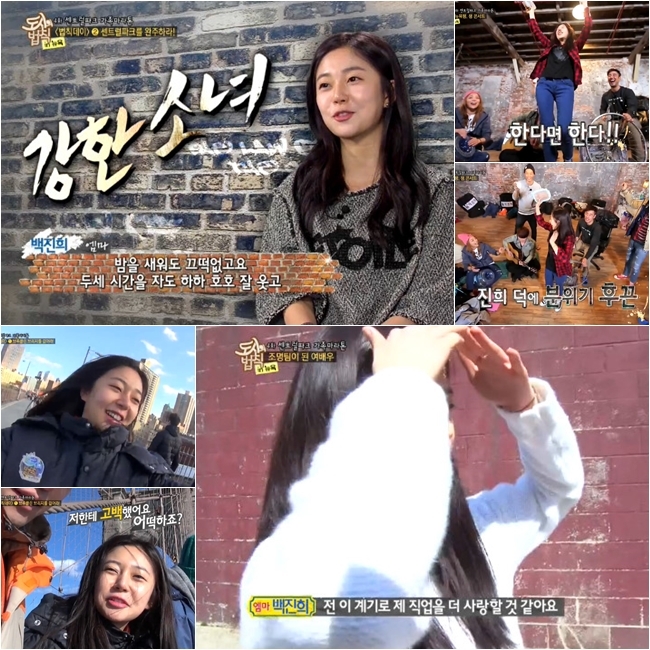 이후 법칙데이의 일환으로 센트럴파크 마라톤에 참가한 백진희. 그는 마라톤을 제안하는 정경호에게 “오빠 나 뉴욕 와서 마라톤을 하고 싶지는 않아”라고 말했지만, 정작 출발선에 선 후에는 에너지 넘치는 모습으로 전력질주를 시작해 웃음을 자아냈다.