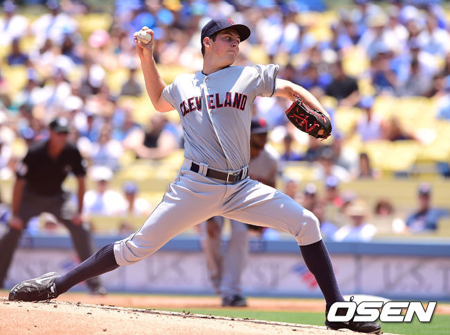 3일(한국시간) 미국 캘리포니아주 로스앤젤레스 다저스타디움에서 열린 '2014 메이저리그' LA 다저스와 클리블랜드 인디언스와의 경기, 클리블랜드 바우어가 역투하고 있다.