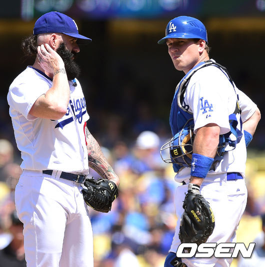 다저스 윌슨이 8회초 마운드에 올라 3실점한 뒤 아쉬워하고 있다./youngrae@osen.co.kr