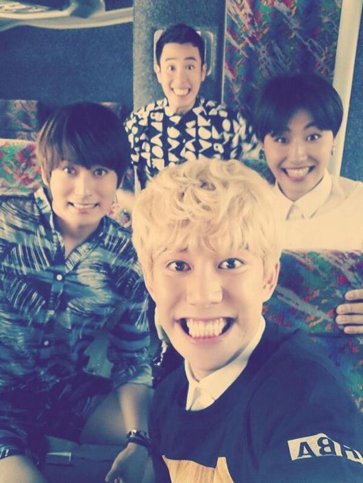 공개된 사진 속에는 블락비 박경과 재표, 유권, 피오가 차 안에서 카메라를 향해 입을 크게 벌린 채 환한 미소를 짓고 있는 모습이 담겨 있다. 익살스러운 네 사람의 표정이 보는 이들에게 즐거운 웃음을 선사한다.