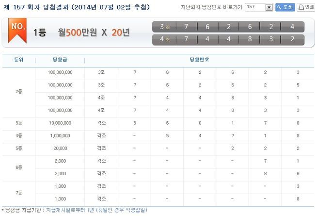 2일 추첨한 제157회 '연금복권520' 1등 당첨번호는 '3조762624'와 '4조744832'다. 1등 당첨자에게는 20년간 매달 500만원씩 당첨금이 분할 지급된다. 실수령액은 세금 22%를 뗀 390만원 정도다. 2등 당첨번호는 각 1등 맨 끝자리에 1을 더하고 뺀 총 4개 번호다. 당첨금은 1억원이다.