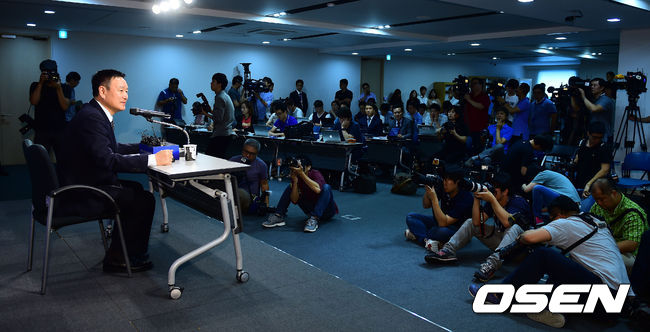 16년만에 최악의 성적을 거둔 홍명보 감독의 거취에 대한 기자회견이 3일 오전 서울 신문로 축구회관 대회의실에서 열렸다.