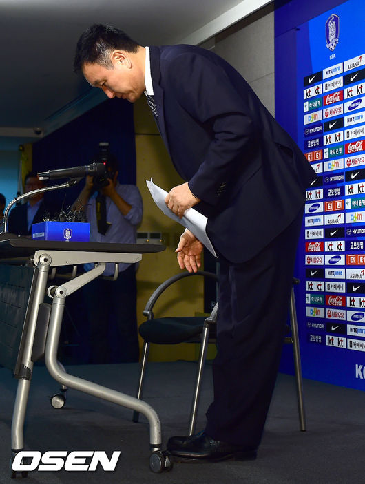 16년만에 최악의 성적을 거둔 홍명보 감독의 거취에 대한 기자회견이 3일 오전 서울 신문로 축구회관 대회의실에서 열렸다.