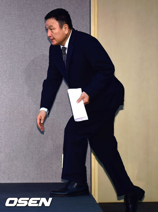 허정무 대한축구협회 부회장이 기자회견 장소로 발걸음을 옮기고 있다.