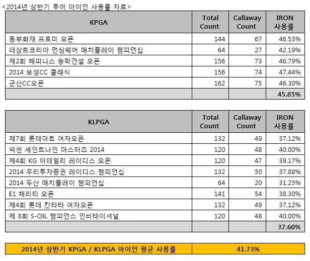 2014년 상반기 KPGA, KLPGA투어 선수들은 어떤 브랜드의 아이언을 가장 많이 사용했을까?