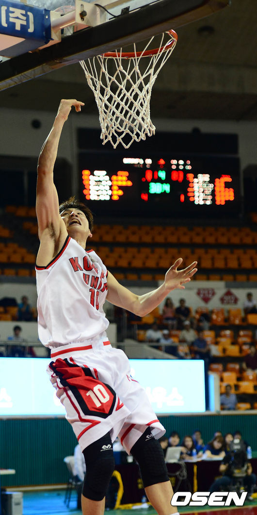 고려대와 미국BYU와의 경기, 4쿼터 고려대 문성곤이 역습을 통해 레이업슛을 성공 시키고 있다.