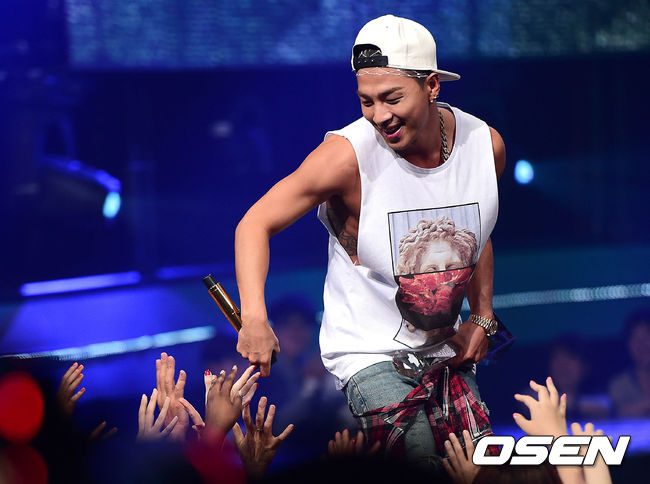 그룹 빅뱅의 태양이 3일 오후 서울 상암동 CJ E&M에서 진행된 Mnet '엠카운트다운'(이하 엠카) 생방송에서 1위를 거머쥔 뒤 앙코르 무대를 선보이고 있다.