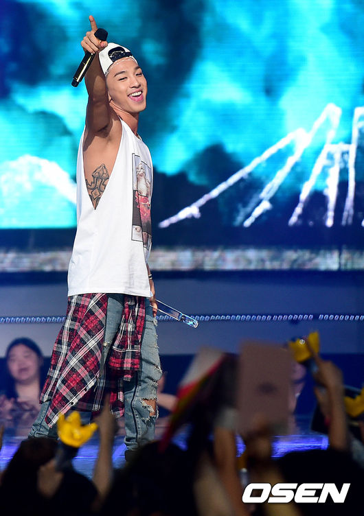 그룹 빅뱅의 태양이 3일 오후 서울 상암동 CJ E&M에서 진행된 Mnet '엠카운트다운'(이하 엠카) 생방송에서 1위를 거머쥔 뒤 앙코르 무대를 선보이고 있다.
