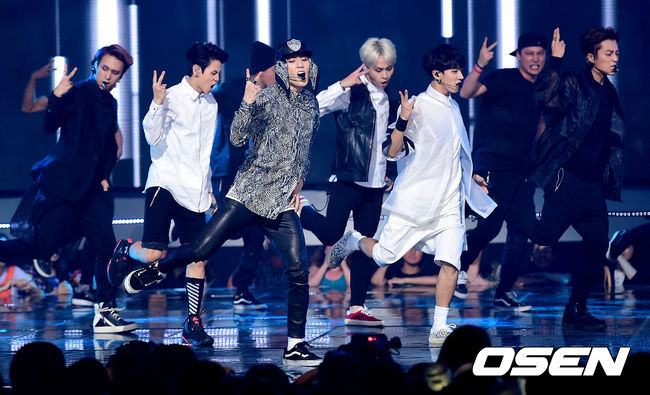 그룹 비스트가 3일 오후 서울 상암동 CJ E&M에서 진행된 Mnet '엠카운트다운'(이하 엠카) 생방송에서 멋진 무대를 선보이고 있다.