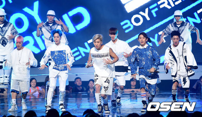 그룹 보이프렌드가 3일 오후 서울 상암동 CJ E&M에서 진행된 Mnet '엠카운트다운'(이하 엠카) 생방송에서 멋진 무대를 선보이고 있다.