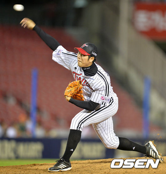 6회초 2사 2루에서 LG 유원상이 힘차게 공을 던지고 있다.