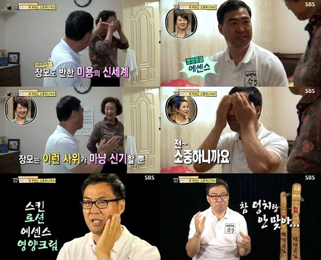 이를 본 장모는 “애 엄마에게도 좀 알려줘라”고 해 출연진의 웃음을 자아냈다. 또 그는 이만기에게 "참 별나다"고 하면서도 이만기가 뿌려주는 미스트를 피하지 않고 오히려 즐기며 사위의 미용비법에 수긍하는 모습을 보였다.