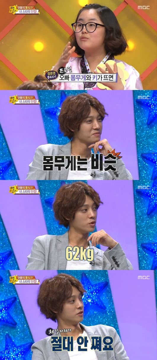 이에 정준영은 현재 몸무게가 62kg임을 공개, “먹어도 살이 안찌는 체질이다. 밤에 라면을 먹고 자도 얼굴이 붓지 않고 배도 안 나온다”라고 말했다.