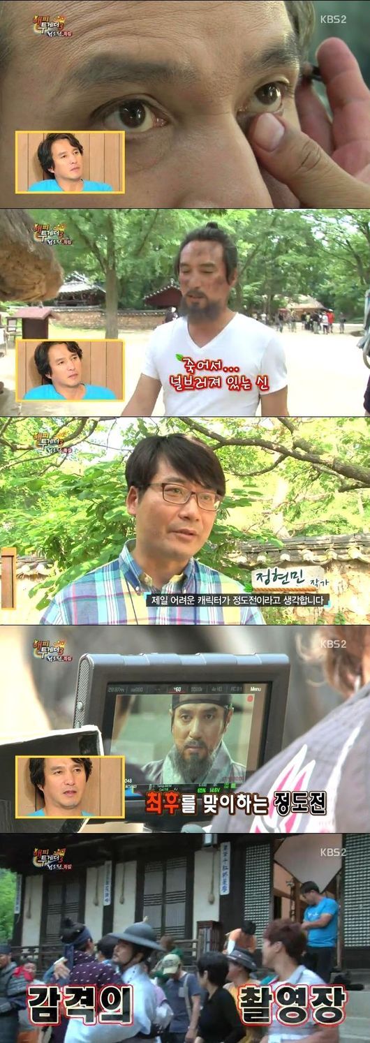 3일 오후 11시 10분 방송된 KBS 2TV '해피투게더3'는 지난달 27일 '정도전'의 마지막 촬영 현장을 방문한 모습을 공개했다.