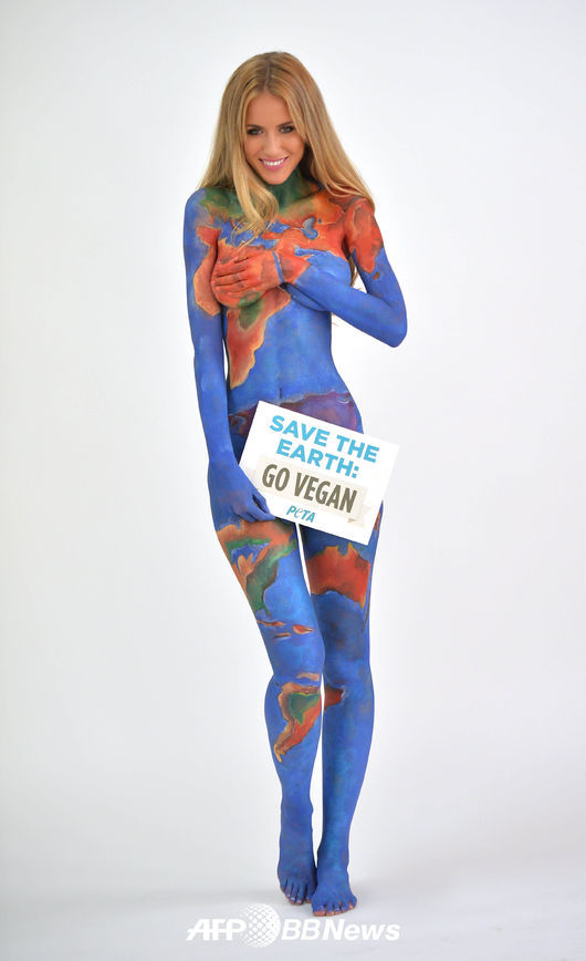 동물애호단체 페타는 목축업, 축산업 등이 환경파괴와 이상기후, 자원 부족을 불러일으킨다고 주장하고 있다. 페타는 이날 엄격한 채식주의 식단으로 환경을 보호하자는 광고를 만들었다. 엄격한 채식주의자들은 고기, 생선은 물론 우유나 달걀도 먹지 않는다. / photo@osen.co.kr < 사진 > ⓒAFPBBNews = News1