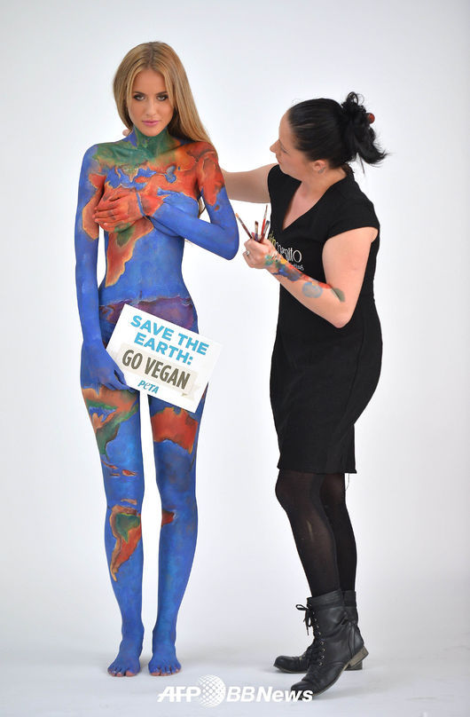 동물애호단체 페타는 목축업, 축산업 등이 환경파괴와 이상기후, 자원 부족을 불러일으킨다고 주장하고 있다. 페타는 이날 엄격한 채식주의 식단으로 환경을 보호하자는 광고를 만들었다. 엄격한 채식주의자들은 고기, 생선은 물론 우유나 달걀도 먹지 않는다. / photo@osen.co.kr < 사진 > ⓒAFPBBNews = News1