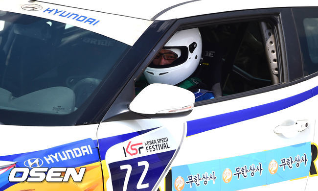 유재석이 4일 오전 인천 연수구 국제업무지구역 인근에서 열린 코리아 스피드 페스티벌(KSF) 연습주행에서 주행을 마치고 피트로 들어오고 있다.