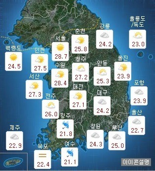 또 남부 내륙지방을 중심으로 소나기가 내리는 곳이 있겠다.