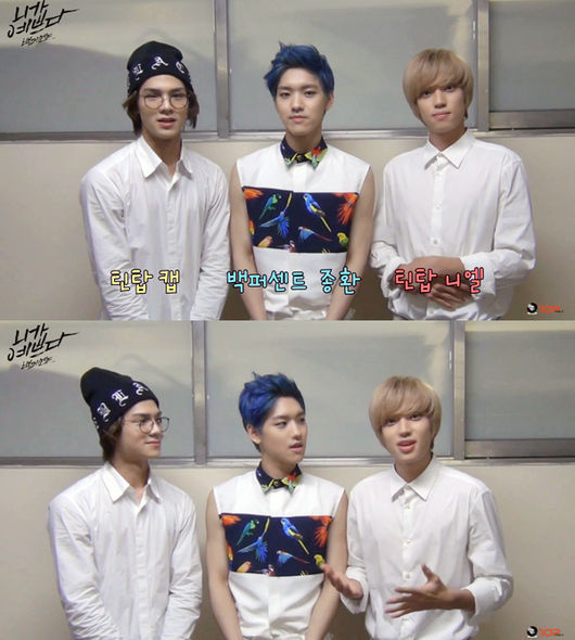 틴탑의 니엘이 후배 그룹 백퍼센트의 타이틀곡 ‘니가 예쁘다’로 오행시를 지으며 이색 응원에 나섰다.