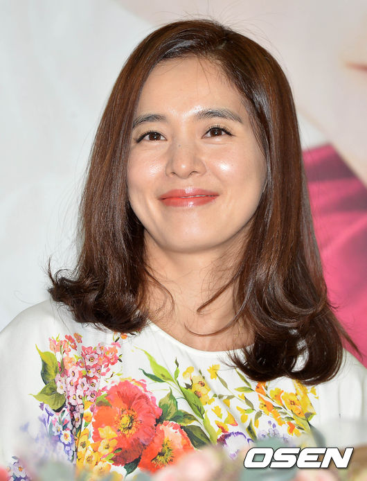 기자간담회에 참석한 정혜영이 미소를 짓고 있다.