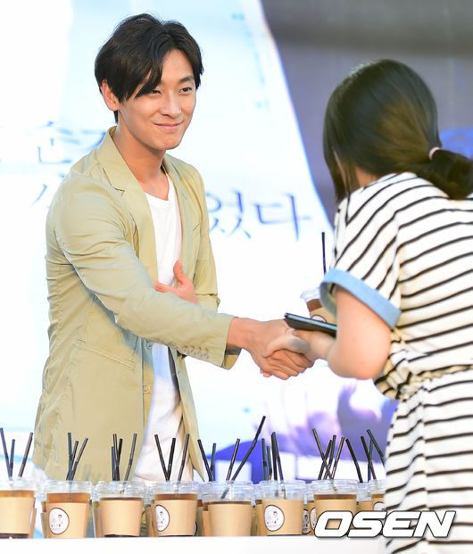배우 주지훈이 4일 오후 서울 이화여대 앞 대현공원에서 진행된 영화 '좋은 친구들' 커피프렌즈 행사에 참석해 팬들에게 커페를 건네고 있다.