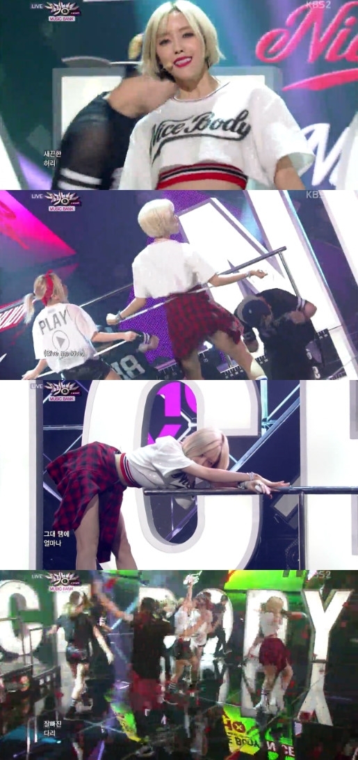 효민은 4일 오후 방송된 KBS 2TV 음악 프로그램 '뮤직뱅크'에 출연해 타이틀 곡 ‘나이스 바디(Nice Body)’를 열창하며 컴백무대를 가졌다.