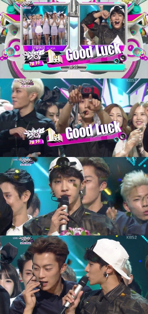 비스트는 4일 오후 방송된 KBS 2TV 음악 프로그램 '뮤직뱅크'에서 AOA의 ‘단발머리’를 제치고 신곡 ‘굿럭’으로 7월 첫째 주 1위를 차지해 트로피를 거머쥐었다.