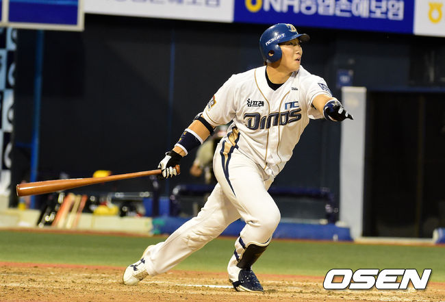 4회말 1사 2루에서 NC 나성범이 추격의 투런포를 날리고 타구를 바라보고 있다.