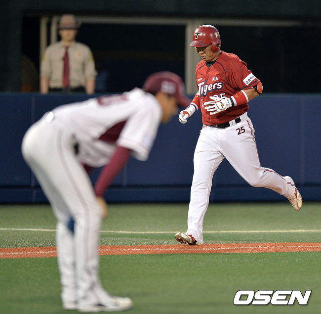 5회초 2사 만루에서 KIA 이범호가 만루 홈런을 치고 그라운드를 돌고 있다.