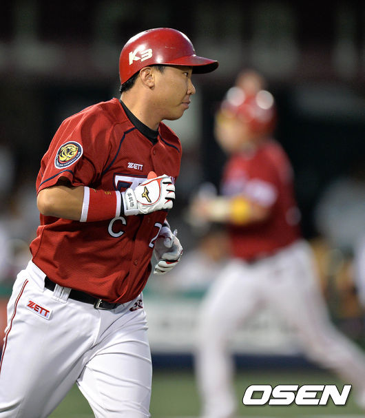 5회초 2사 만루에서 KIA 이범호가 만루 홈런을 치고 그라운드를 돌고 있다.