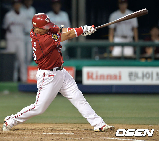 5회초 2사 만루에서 KIA 이범호가 만루 홈런을 치고 있다.